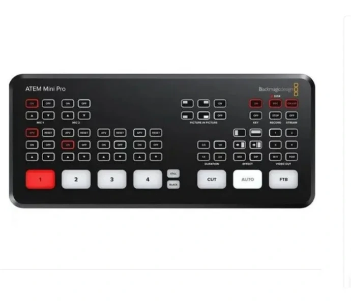 Ou apenas Atem Mini (mesa de corte).Atualmente, está com defeito, mas conseguimos usar o único canal que funciona para enviar vídeos do notebook para o OBS Studio.