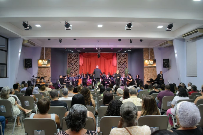 - Configuração: Luzes de ambiente suaves, foco no púlpito para as boas-vindas.