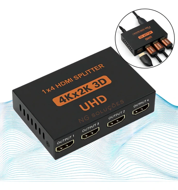 Splitter Distribuidor Divisor Hdmi .Serve para quem distribuir o sinal HDMI de uma única fonte para até quatro telas simultaneamente, mantendo a qualidade de imagem e som em resolução .Atualmente usamos para mandar sinal para as 3 TVs e para o projetor